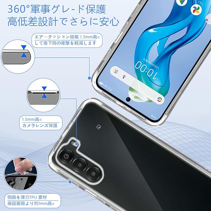 【高い透明度】 背面に高透明度と指紋軽減を両立した特殊TPU素材を採用、透明背面は黄ばまず。透明度が高く、本体の鮮やかな色をそのまま映し出すことができ、