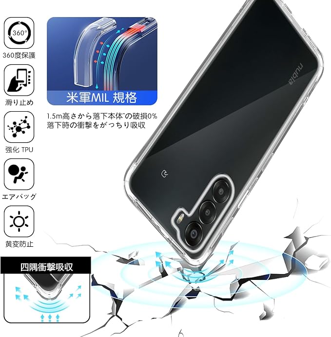 ZTE nubia S 5G 専用クリア ソフト シリコン TPU ケース 【四隅?化保護 米軍MIL規格 】 対応 ZTE nubia S A403ZT カバー 液晶 スマート nubia S 5G TPUカバー 保護ケース 【高い透明度 黄変しにくい 超軽量 衝撃防止 落下防止 超薄型 手触り良い 取付簡単 ワイヤレス充電対応】 a
