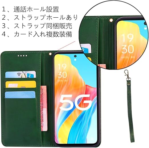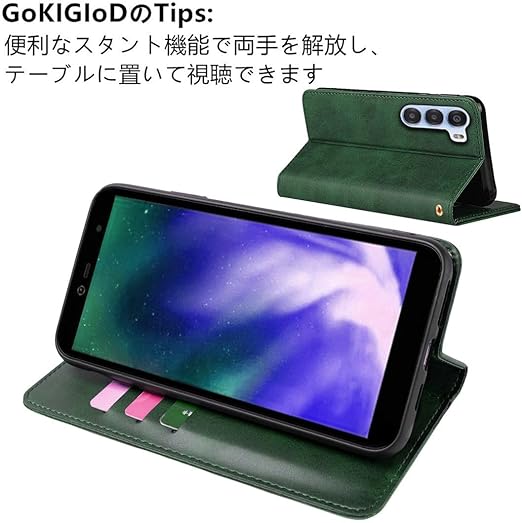 Nubia S 5G A403ZT ケース 手帳型 ストラップ 同梱 適用 NubiaS5G ワイモバイル 手帳型ケース ヌビア S 5G カバー 手帳 スマホケース A403ZTケース case 【GoKIGIoD】 財布型 カード収納 ストラップホール 内蔵マグネット スタンド機能 耐衝撃 レトロ グリーン a
