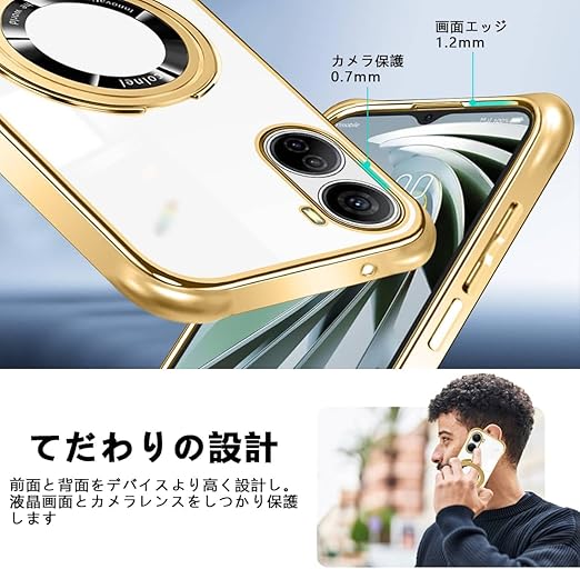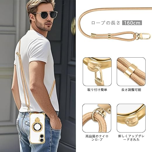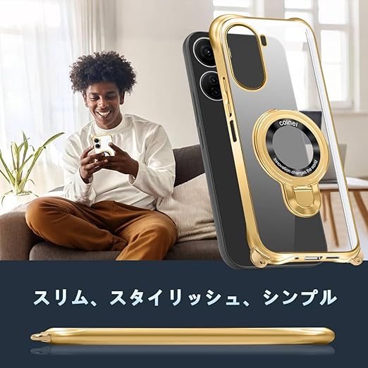 ZTE Libero 5G IV ケース クリア ショルダー 透明 リング付き スタンド機能 A302ZT ケース マグネット搭載 ZTE nubia Ivy スマホケー ス 120度反転スタンド 耐衝撃 米軍規格 携帯 紐付き 斜めがけ 織りストラップ付き ネックストラップ ショルダー 縦/横 2WAY 長さ調整可能 取り外し可能 落下防止 紛失防止(ゴールド) a