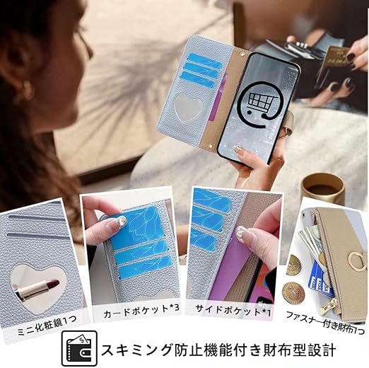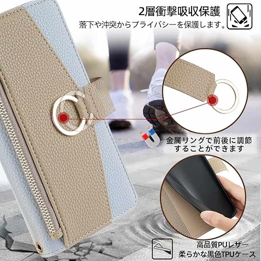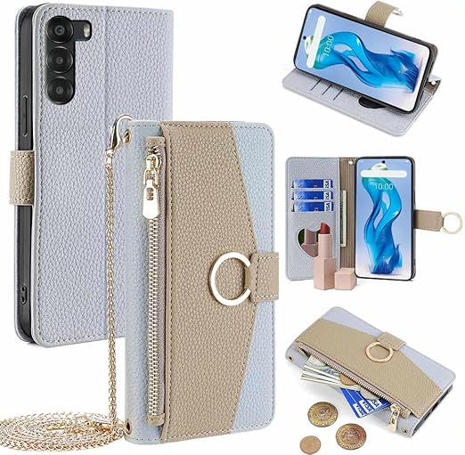 ZTE Nubia S 5G ケース 手帳型 A403ZT ケース ショルダー ストラップ付き nubia s 5g スマホケース スタンド機能 カード収納 ミラー付き 耐衝撃 肩掛け おしゃれ 女性 柔らかいTPU TOO&SOO ヌビア s 5g ケース カバー 斜め掛け - ライトブルー a