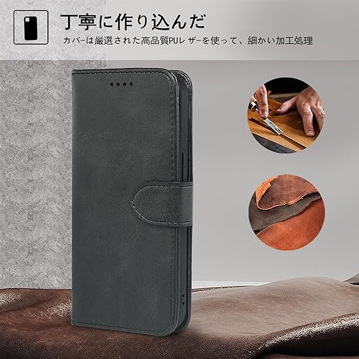 ▲ シンプルレザーケースの特徴:フェイクレザーを使用し、飽きのこないシンプルなデザインとなっております。本革のような手触りで、心地よく手にフィットします。