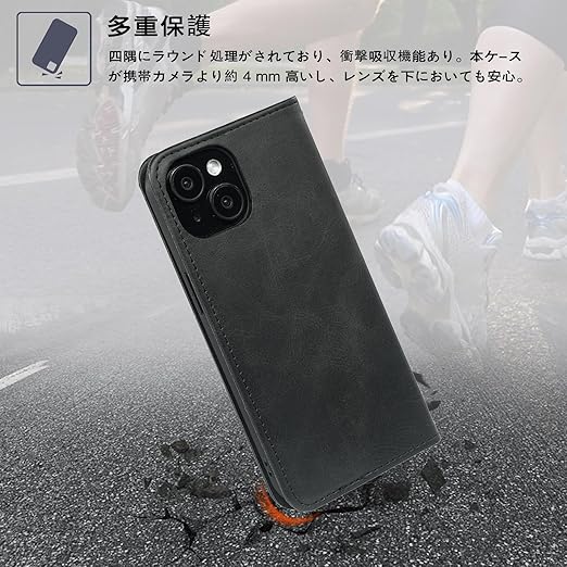 ▲ シンプルレザーケースの特徴:フェイクレザーを使用し、飽きのこないシンプルなデザインとなっております。本革のような手触りで、心地よく手にフィットします。