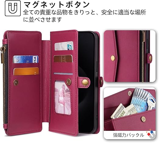 【ラグジュアリー感の手触りとデザイン】高品質なPUレザー素材を厳選しました。凹凸感のある 柔らかく 肌なじみのいい シュリンク PUレザー は、目に見える高級感と抜群な手触りが特徴です!柔軟性がありますので装着脱着ときも携帯本体に傷からしっかり保護できます。このスマホケースのデザインは、質感と使いやすさを追求しています。