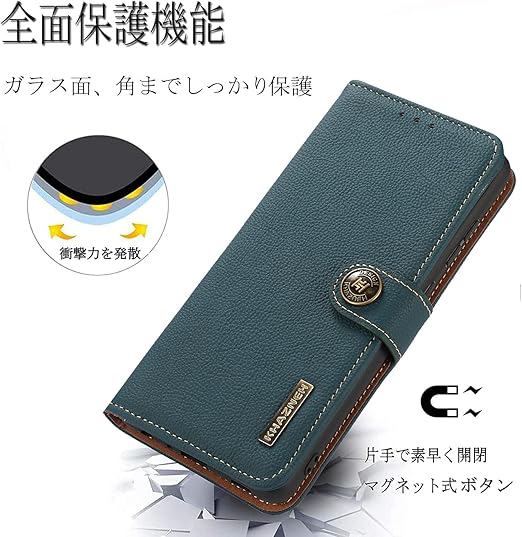 Nubia S 5G ケース 手帳型 本革 ヌビア S 5G 本革 財布型 シュリンクカーフレザー 高級本皮 耐衝撃 マグネット式ボタン スピーカーホール付き カード収納 大容量 3枚 写真収納 横置きスタンド機能 ストラップホール有り 耐摩擦 Ayakumo グリーン a