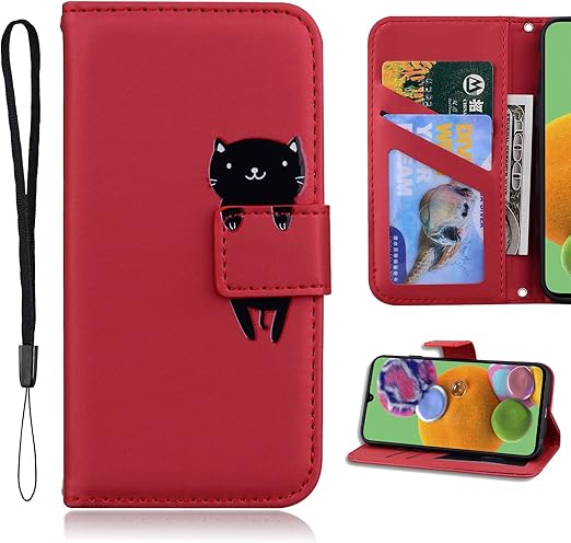 OPPO A55s 5G ケース oppo A55s A102OP CPH2309 手帳型ケース オッポ A55s 5G 手帳型 oppoA55s カバー 携帯ケース a55s 5g スマホケース 携帯カバー A55s5G ケース手帳型 スマホケース oppoa55s case 肌触り良いレザー柔らかいTPUケース カード収納 財布型 ベルトマグネット スタンド機能 猫 かわいい 動物柄 薄型 防水 ノート型 人気 おしゃれ 男女兼用 赤 (OPPO A55S 5G 対応) レッド a