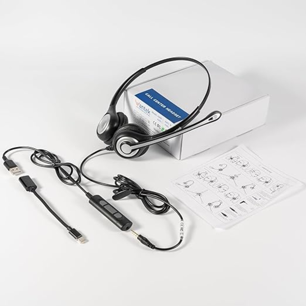 Wantek USBヘッドセット マイク付き PCノートパソコン用 3.5mm/USB/Type-Cジャック 3イン1ヘッドホン ノイズキャンセリング&オーディオコントロール付き チームヘッドセット オフィス コールセンター 仕事用 モノラル用 a