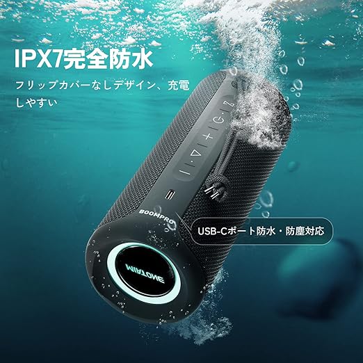MIATONE BoomPro Bluetooth スピーカー 40W出力 IPX7防水 ブルートゥース スピーカー 重低音 アウトドア ワイヤレススピーカー Bluetooth5.3 RGB LEDライト DSP処理 PC パソコン 車載/パッシブラジエーター搭載 / 20時間連続再生 / マイク内蔵/ステレオペアリング/USB-C充電 a