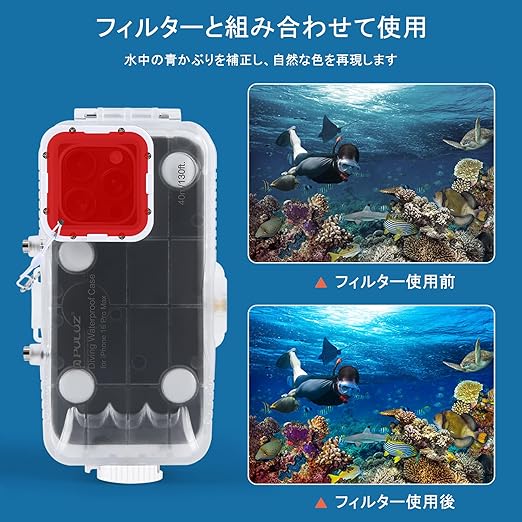 PULUZ iPhone 16 Pro Max用水中防水ケース 40m防水IPX8 携帯ダイビングハウジングけーす iPhone 16 Pro Max用専用水中ケース PC+ガラス製 diving case for iphone 16pro max 防塵&耐衝撃&耐久性 全方位保護 水中撮影最適 a