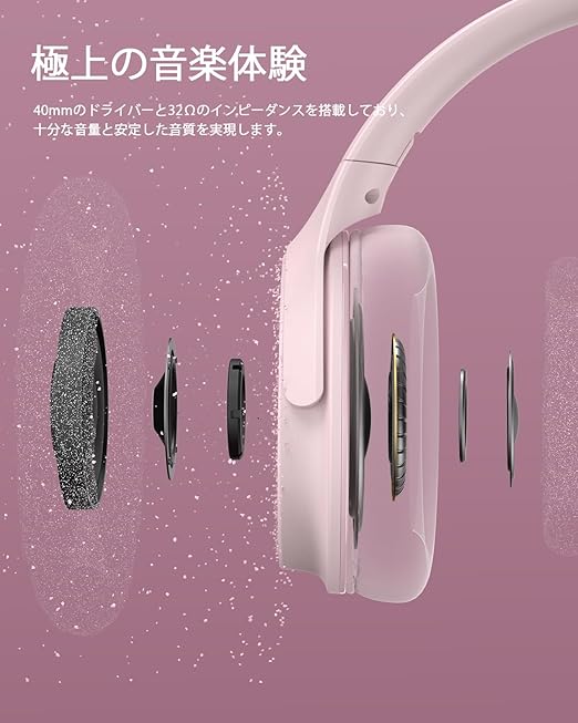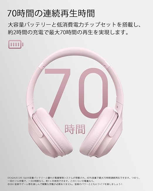 DOQAUS(ドカアス) ヘッドホン Bluetooth5.3 ワイヤレス 最大70時間連続再生 3EQモード 有線無線両用 AAC対応 マルチポイント マイク内蔵 密閉型 オーバーイヤー PC・スマホ・ウォークマン対応 軽量 slim版 LIFE5 (ピンク) a