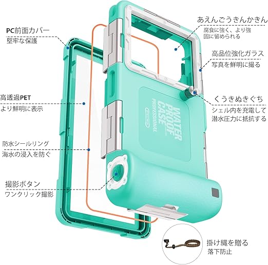 潜水用ケース iphone 水中撮影 ケース 防水ケース スマホ用 水中撮影・写真 IPX8標準防水レベル水深さ15mまで潜水 水泳 防水ポーチ お風呂 海水浴 夏フェス 温泉 お釣り 排気機能 ストラップ付き (薄緑+白) a