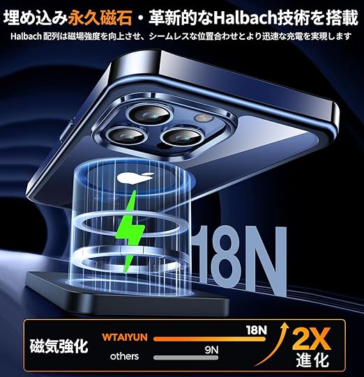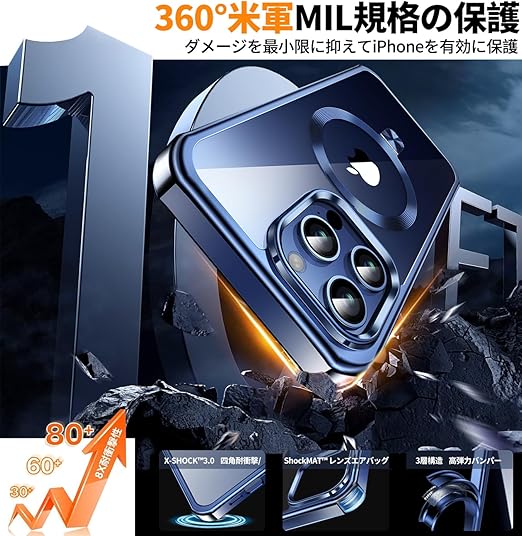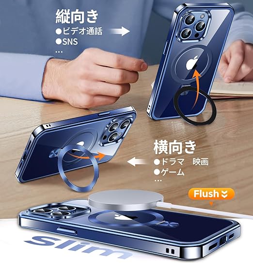 【多機能スタンド・マグセーフ対応】当店のiPhone 15 Pro Max ケースは、スタンド、CDリング、マグセーフ充電の3つを一体化しています。0-120°まで自由に調節でき、スタンドを収納すると完全に隠れます。マグセーフリングには堅牢な航空用アルミニウム合金ベアリングを採用し、リングの部分的な緩みを効果的に解決しました。このアイホン15 Pro Max ケースは内蔵の38個のN52永久磁石がマグセーフをしっかりと固定し、安全で迅速なワイヤレス充電を実現します