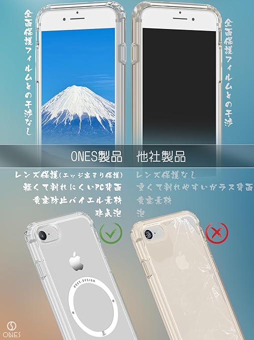ONES HD超透明 iPhone Se3 Se2 Se 8 7 超強磁性MagSafe対応 ハードケース 米軍MIL規格 エアバッグ 超耐衝撃 レンズ保護 画面保護 「 高靭性強化PC保護板 ? 高弾性衝撃吸収?シリコンバンパー 」 Qiワイヤレス充電 傷防止 滑り止め 超軽量 持ちやすい 黄ばみ防止 クリスタル クリア マグネット カバー a