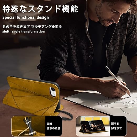 【収納機能&横置きスタンド機能】携帯ケース内側に実用性のカー