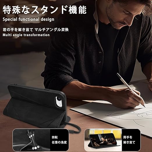 ZHUAZHULE iPhone SE3 ケース iPhone SE2 ケース iPhone8 iPhone7 ケース 手帳型 アイフォンSE 第3世代 第2世代 8 7 財布型 レザー スマホケース カード収納 マグネット式 スタンド機能 高級PUレザー 携帯カバー 耐衝撃 レンズ保護 擦り傷防止 ストラップホール付き おしゃれ 人気 (ブラック) a