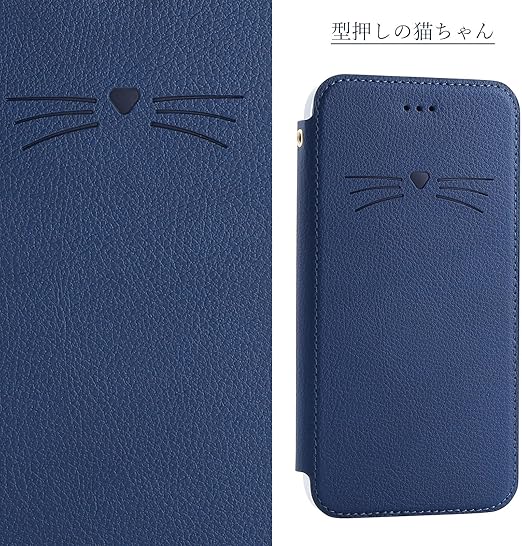 iPhone se ケース 2世代 / 3世代 手帳タイプ 背面クリア 型押しの猫柄 シンプル スッキリ アイフォン se 第3世代 スマホカバー 手帳型 薄型 ストラップ ホール スリム Qiワイヤレス対応 ACkaban アイフォン SE 第2世代 カバー 手帳 薄いケース マグネット無し ベルトなし 使いやすい おしゃれ iPhone 8 iPhone SE2 SE3 手帳型 スマホケース カードポケット付き iPhoneマック見え 男性 女性対応 カップル 素敵 ダークブルー a