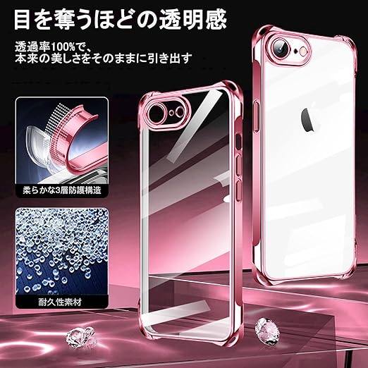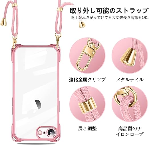 iPhone SE 第3/2世代 7 8 用 ケース クリア ショルダー iphone 7 8 用 スマホケース アイフォン7 8 se2 se3 カバー 肩掛け 斜めかけ 縄掛けケース 透明 TPU 薄型 軽量 耐衝撃 紐付き 斜めがけ 織りストラップ付き ネックストラップ ショルダーケース 縦/横 2WAY 長さ調整可能 取り外し可能 落下防止 紛失防止 ワイヤレス充電対応 (ローズゴールド) a