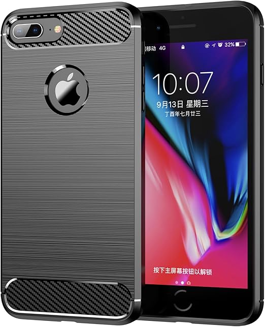 iPhone 7Plus 用 ケース TPU素材 柔軟 薄型 耐衝撃 耐久性の高い 耐摩擦 防汚 指紋防止 米軍MIL規格 ワイヤレス充電対応 スマホカバー EUMADOVE (ブラックソフトケース, iPhone 7Plus) a