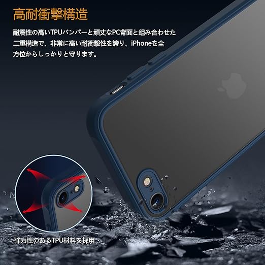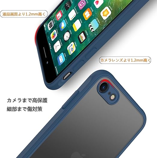 iPhone SE 第3世代 第2世代 ケース 耐衝撃 半透明 iPhone8 ケース 軽量 薄型 PC iPhone7カバー 滑り止め マット感 黄ばみなし 米軍MIL規格 ストラップホール付き ワイヤレス充電 EUMADOVE (ブルー, iPhone SE2022、iPhone SE2020、iPhone 8、iPhone 7) a