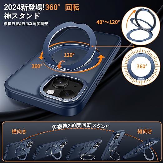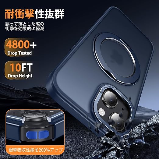 iPhone 14 / iPhone 13 用 ケース Magsafe対応 ワイヤレス充電 360°回転スタンド 縦横両対応 Gunwon スマホケース iphone14 / iPhone13 用 米軍規格 耐衝撃 半透明 マット感 マグセーフ 防指紋 リング マグネット搭載 アイフォン14/アイフォン13 用 カバー 「ブルー」 a