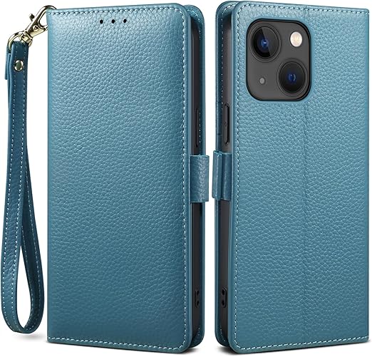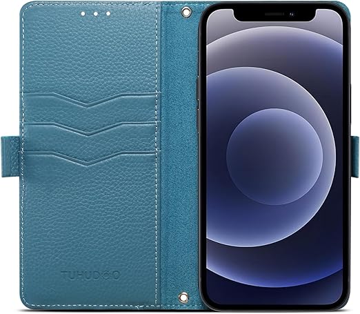 【 2023 新登場! 高級シュリンクカーフレザー】iPhone 13 mini ケース 手帳型 本革 牛革 カード収納 サイドマグネット式 横置きスタンド機能付き 上下にストラップホール付き ストラップ付 アイフォン 13 mini ケース 柔軟なTPU素材 耐衝撃 全面保護[Noble Series](iPhone 13 mini、シアン) a
