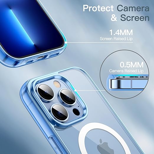 JETech iPhone 13 Pro マグネット ケース(6.1インチ用) MagSafe ワイヤレス充電対応 衝撃吸収 バンパーカバー 傷つけ防止 透明バック (シエラブルー) a