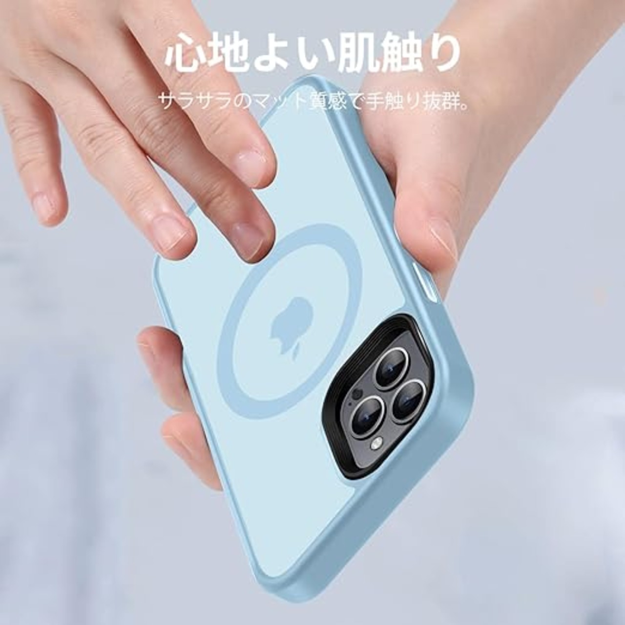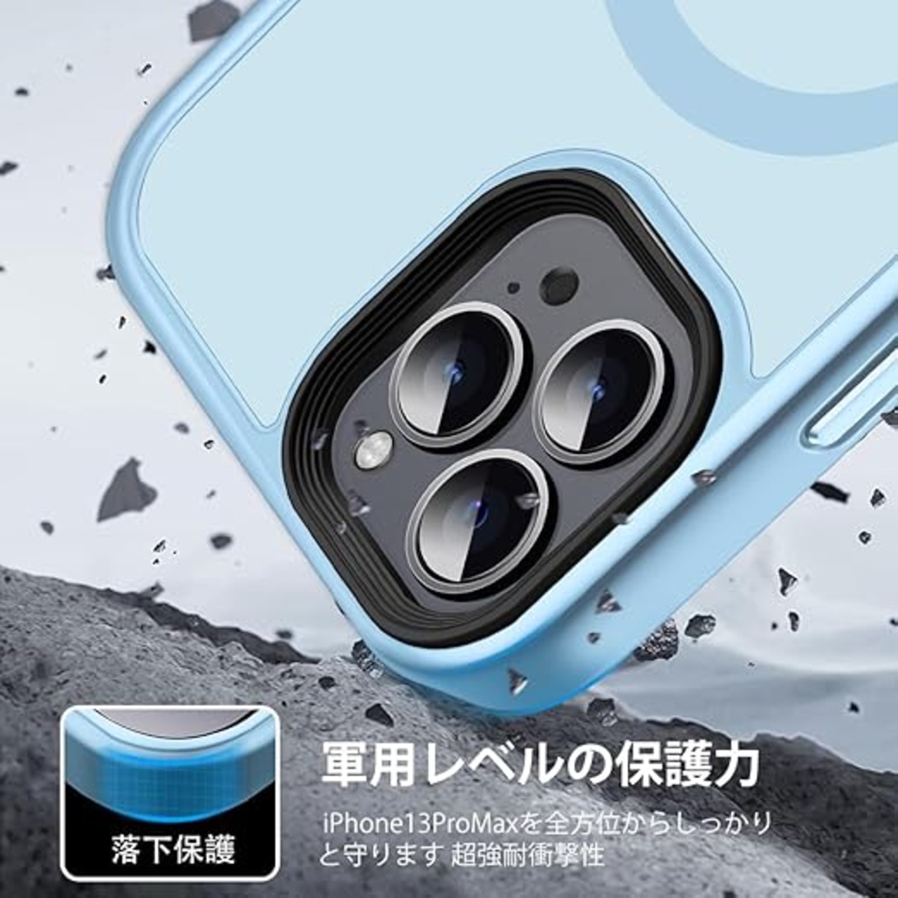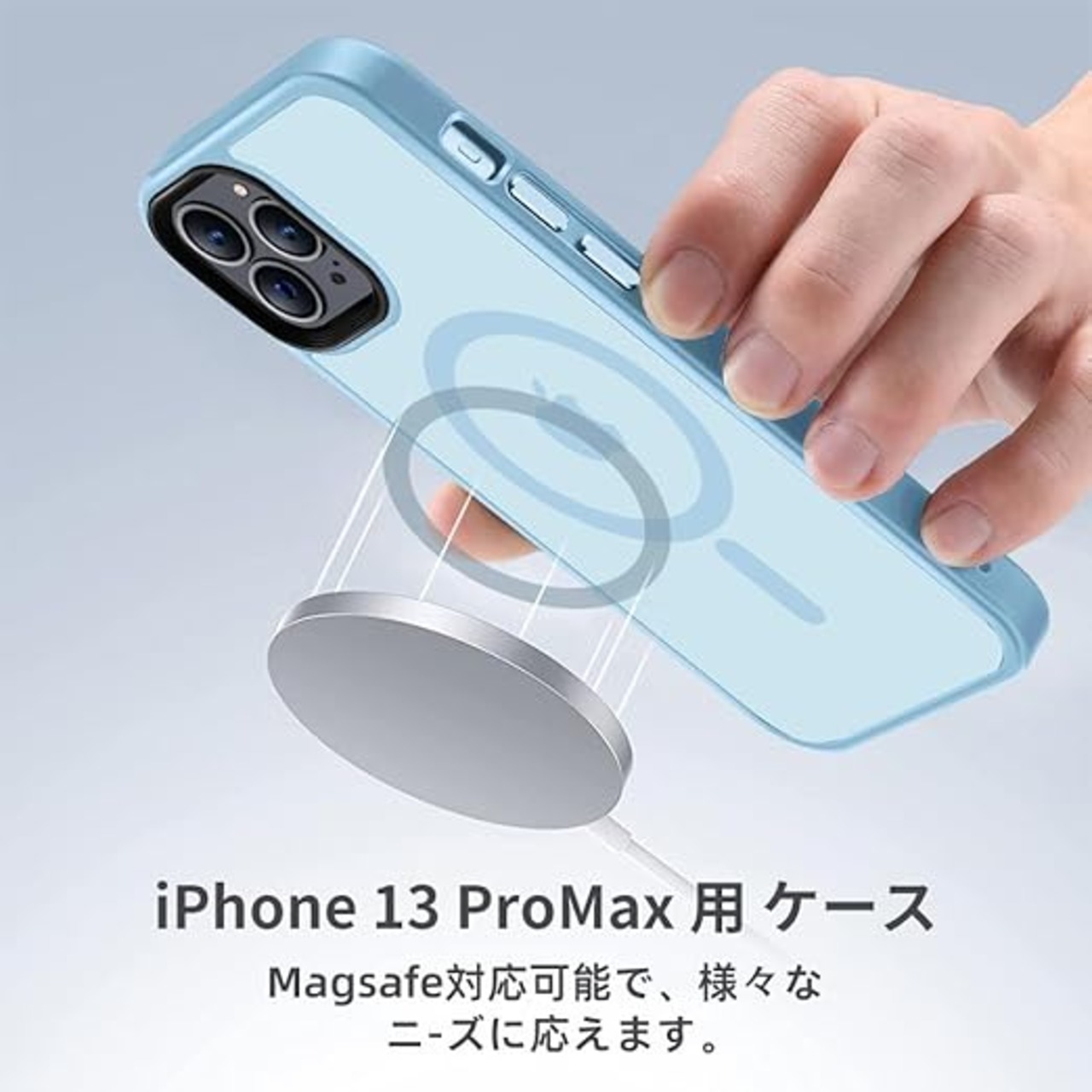 【米軍規格・MagSafe対応】Gtsoho iPhone 13 Pro Max 用 ケース 半透明 米軍規格 耐衝撃 マグネット搭載 マット感 黄ばみなし ストラップホール付き マグセーフ対応 ワイアレス充電対応 ライトブルー a
