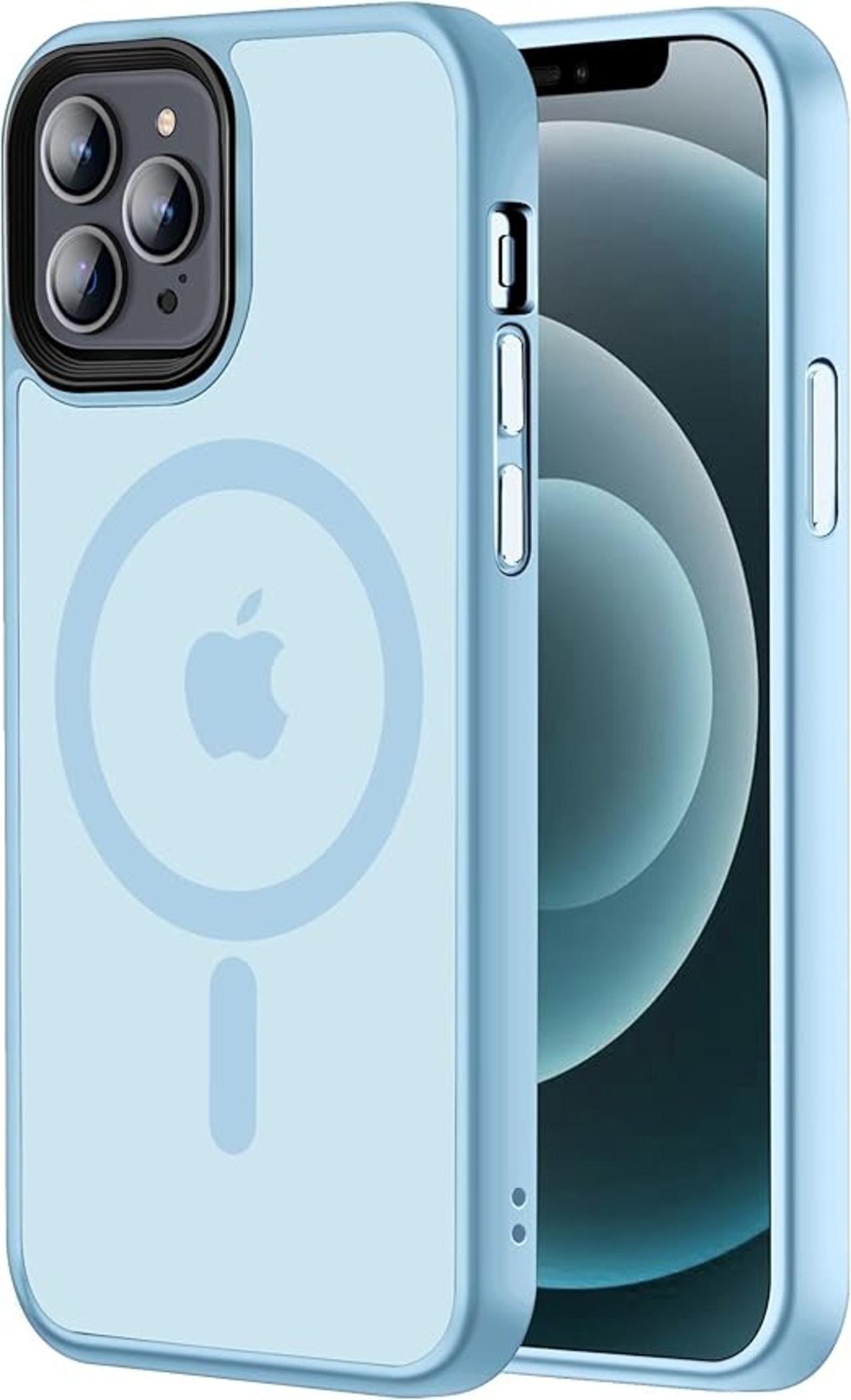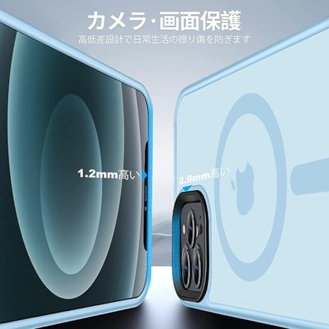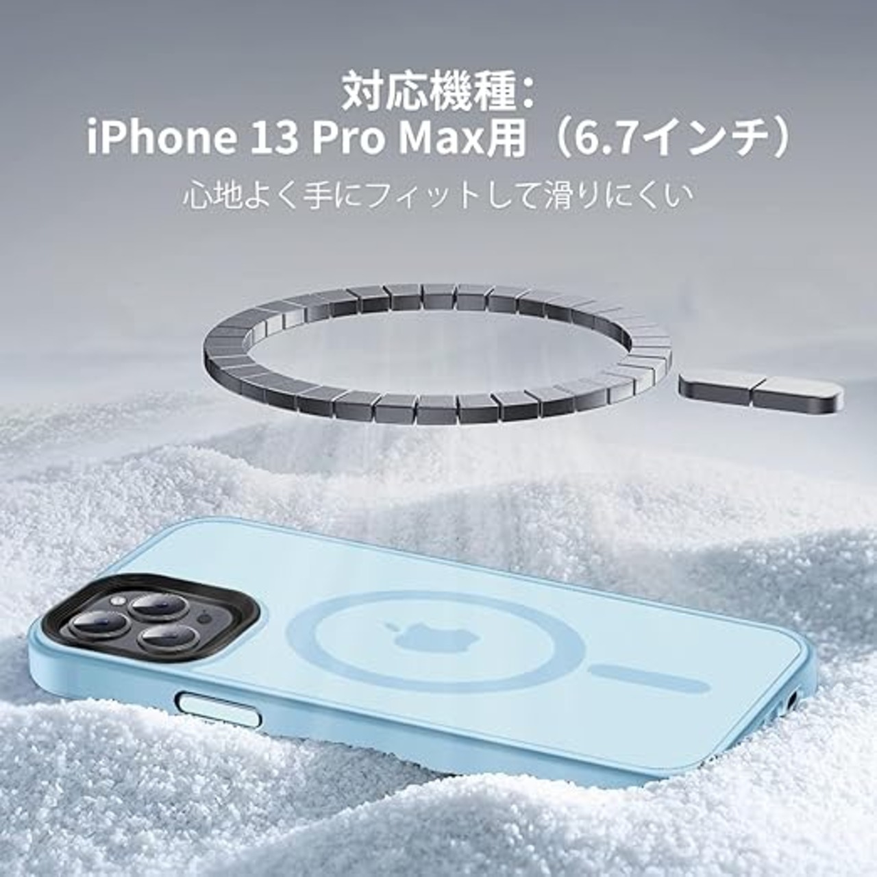 【米軍規格・MagSafe対応】Gtsoho iPhone 13 Pro Max 用 ケース 半透明 米軍規格 耐衝撃 マグネット搭載 マット感 黄ばみなし ストラップホール付き マグセーフ対応 ワイアレス充電対応 ライトブルー a