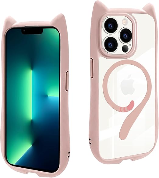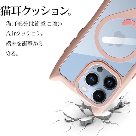 iPhone 13 Pro Max ケース 専用 猫耳 mimi MagSafe対応 TPU ストラップホール付き ねこみみ 猫 ネコ ねこ 背面クリア シンプル おしゃれ アイフォン 13 プロ マックス カバー かわいい 指紋防止 耐衝撃 韓国 スマホケース(クリアピンク) a