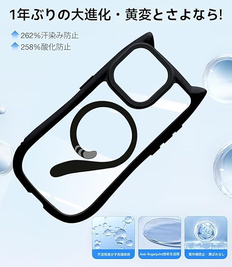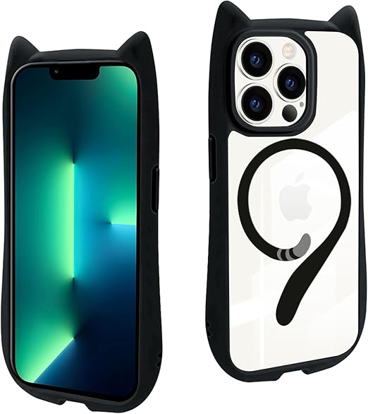 iPhone 13 Pro Max ケース 専用 猫耳 mimi MagSafe対応 TPU ストラップホール付き ねこみみ 猫 ネコ ねこ 背面クリア シンプル おしゃれ アイフォン 13 プロ マックス カバー かわいい 指紋防止 耐衝撃 韓国 スマホケース(クリアブラック) a
