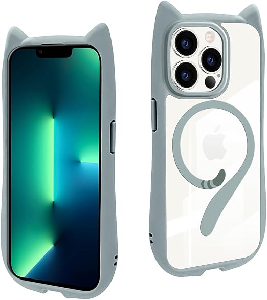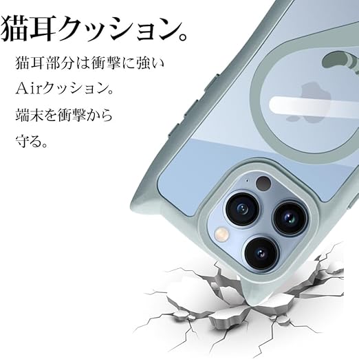 iPhone 13 Pro Max ケース 専用 猫耳 mimi MagSafe対応 TPU ストラップホール付き ねこみみ 猫 ネコ ねこ 背面クリア シンプル おしゃれ アイフォン 13 プロ マックス カバー かわいい 指紋防止 耐衝撃 韓国 スマホケース(クリアブルー) a
