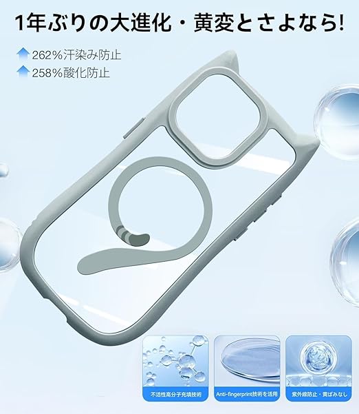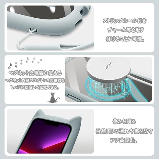 【ワイヤレス充電対応】ケースをつけたまま、Magsafeアクセサリを簡単に装着できるかわいい猫さんしっぽデザイン。本製品はワイヤレスチャージャーを使用しての充電に対応するよう設計されています。(※ 全ての環境で動作保証をするものではありません。)