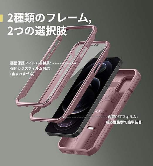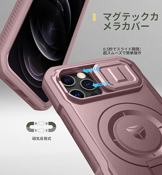 Dexnor iPhone 12&12 Pro用 マグネットケース - スライド式カメラカバー&調整可能キックスタンド&内蔵画面保護フィルム付き 耐衝撃 ヘビーデューティ ケース(ピンク) a