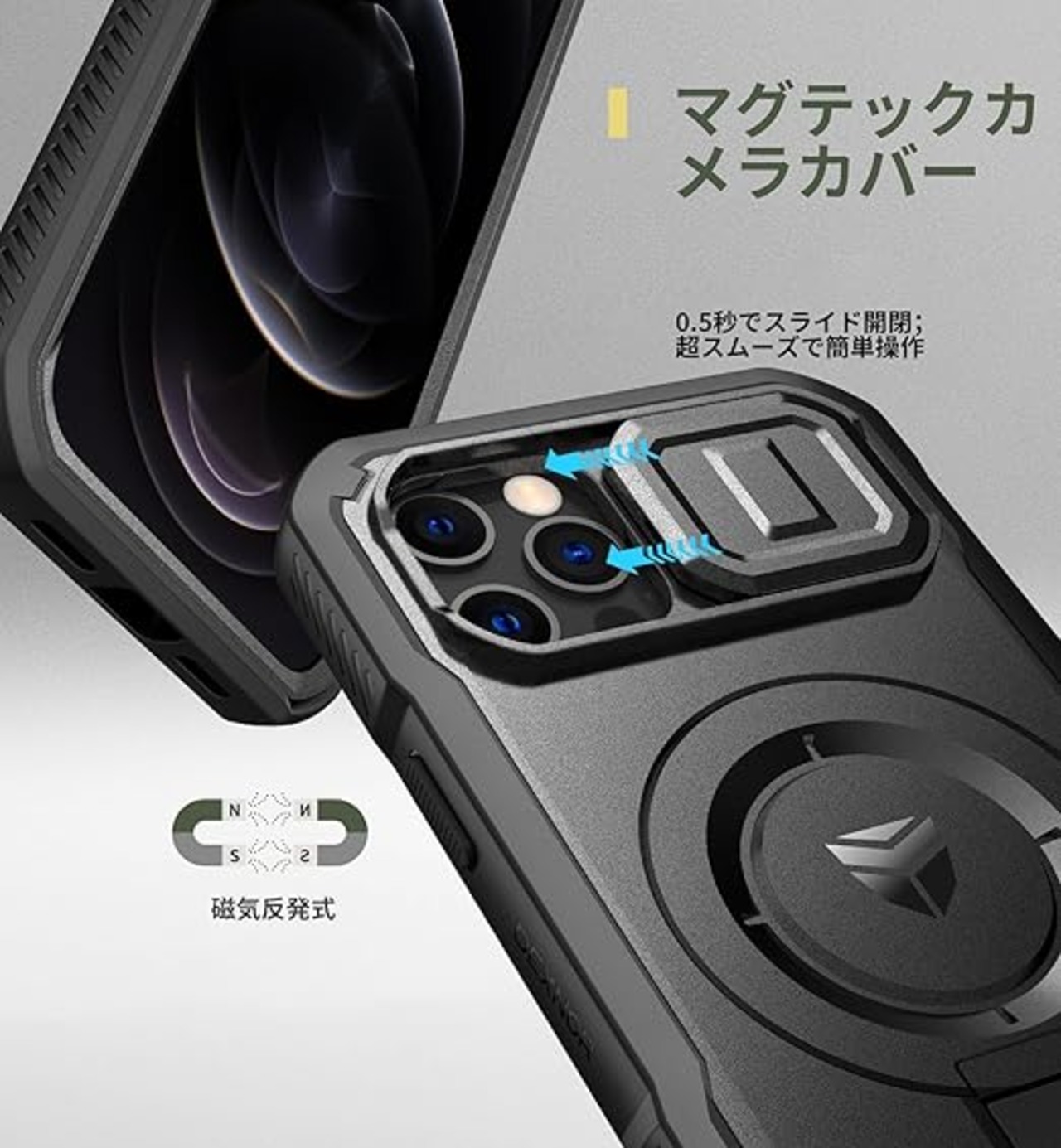 【強力マグネット機能】最大1,400gの磁力を実現する「マイティーマグネット」搭載。ワイヤレス充電器やカーマウントなど、あらゆる磁気アクセサリーに確実に吸着。どんな状況でもスマートフォンを安全に固定します。