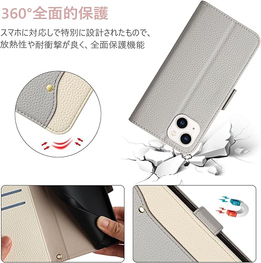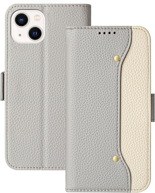 FEYYXI iPhone 13 ケース 手帳型 あいふぉん13 手帳型 ケース アイフォン 13 財布型 カバー カードポケット付き ケース 全面保護 スマホケース カード収納 横置きスタンド機能 擦り傷防止 おしゃれ 上質な手触り 高級PUレザー ケース(iPhone 13 6.1inch) グレー a