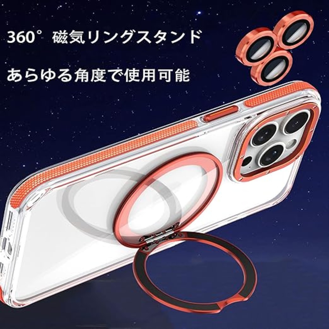 【磁気・スタンド・360度回転リング多機能携帯ケース】スタンドは航空グレードの金属合金素材で作られており、