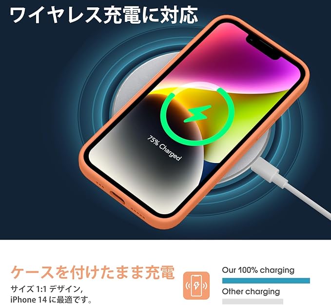 【ワイヤレス充電に対応】 iPhone 14シリコンケースはワイヤレス充電に対応しており、ケースを外さずに携帯電話をワイヤレス充電できます。