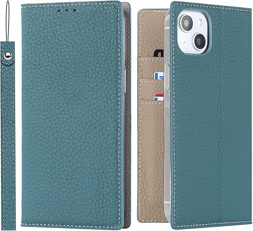 Eastwave アイフォン for iPhone 14 ケース 本革 牛革 for iPhone 14 ケース 手帳型 for iPhone14 カバー 手帳 本革 柔らかい 本皮 スプラットホール付き スプラット同梱 内蔵マグネット-ライトブルー a