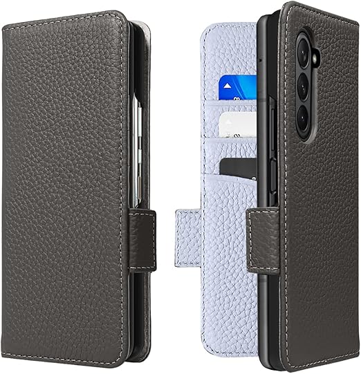 Samsung Galaxy Z Fold5 ケース 本革 手帳型 カバー 耐衝撃 保護 Samsung Fold 5 5G カバー 本革 内蔵マグネッ RFIDト 財布型 SC-55D/SCG22 携帯カバー カードポケット スタンド機能 NanHou - ダークグレ/ライトグレー a