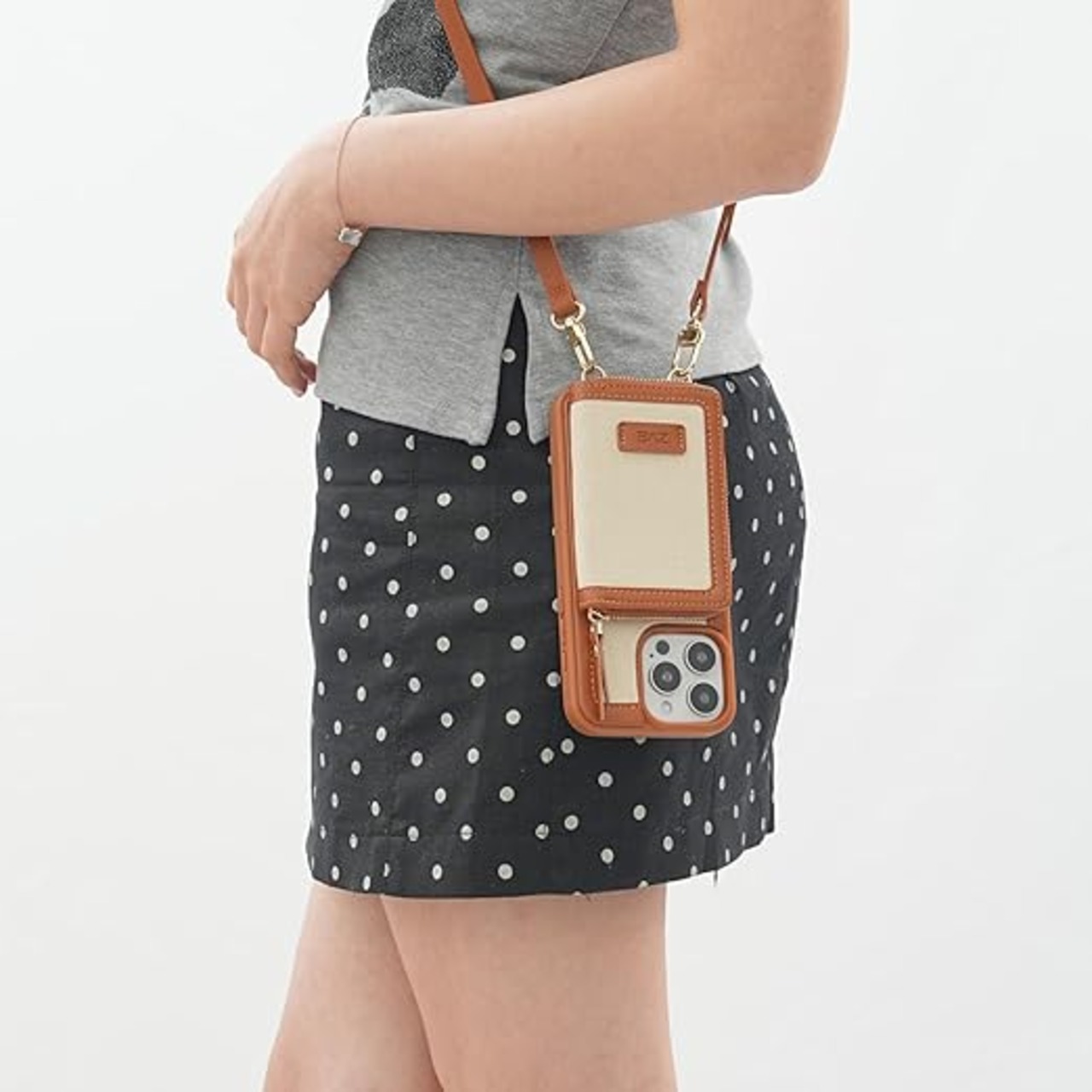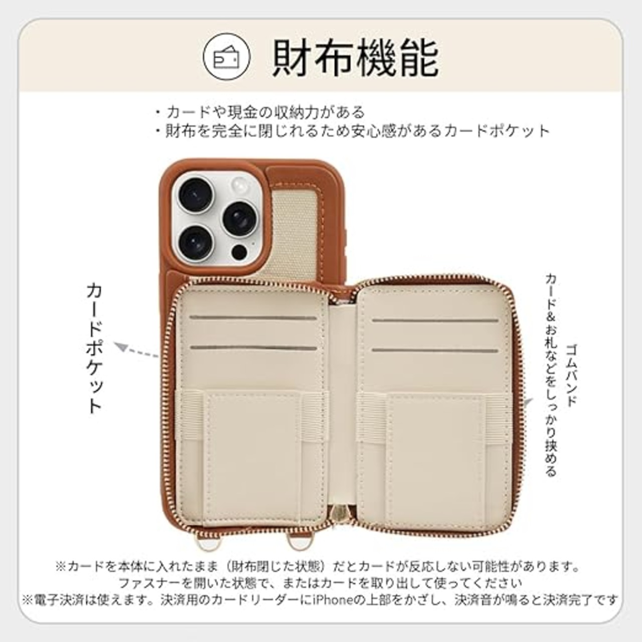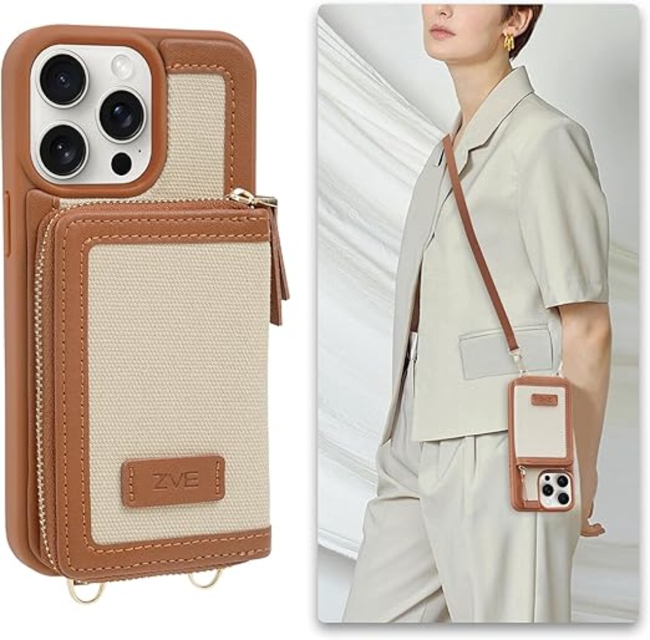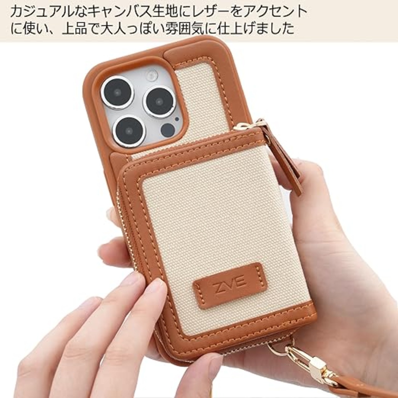 ZVE iphone 15pro max適応ケースカード入れ 【キャンバスレザーコンビ】アイフォン15promax 手帳型ショルダーストラップ付き iPhone15pro maxケースicカード入れ 2ways あいふぉん15プロマックス適応ケース財布型 6.7インチ(ブラウン) a