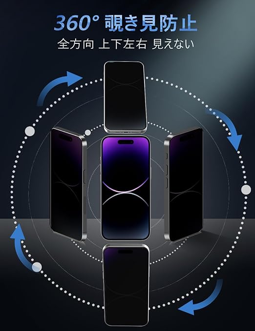 【360° 覗き見防止フィルム】 iPhone 14 Pro ガラスフィルム 覗き見防止 360度 いPhone14Pro 覗き防止 フィルム 360 アイフォン14プロ 保護フィルム プライバシー 上下左右 全方向 覗き見 a