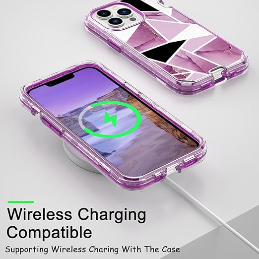 MuZiF iPhone 14 Pro Max 用 ケース 米軍規格の保護 硬い大理風背面 メッキ加工 かわいい 耐衝撃構造 全面保護 黄変防止 擦り傷防止 アイフォン14 Pro Max用 女の子 女性人気スマホケース(iPhone 14 Pro Max用,ホワイト+ブラック+パープル) a