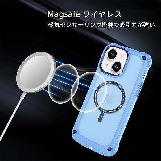 【耐衝撃・Magsafe対応】Kuoyida iPhone15 Plus ケース 兼用 iPhone 14 Plusスマホカバー マグネット搭載 磁気充電 いphone15plus四角気嚢 透明 黄変防止 指紋防止 米軍MIL規格, スラップホール付き アイフォン15plus 6.7インチ 対応 ケース (クリアブルー, iPhone 14Plus/iPhone 15Plus) a