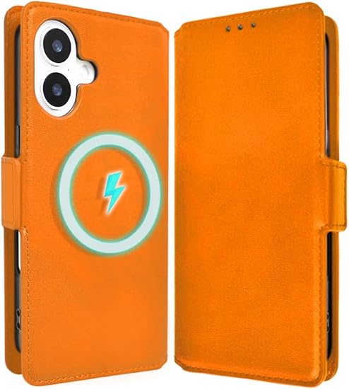 シズカウィルRe iPhone 14 ケース MagSafe対応 手帳型 カバー 本革調 スマホケース レザーケース 1個入り オレンジ a