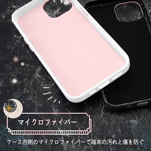 特殊なラメ加工を施したキラキラと綺麗な素材感のケース。