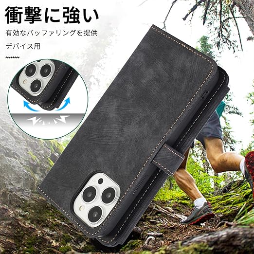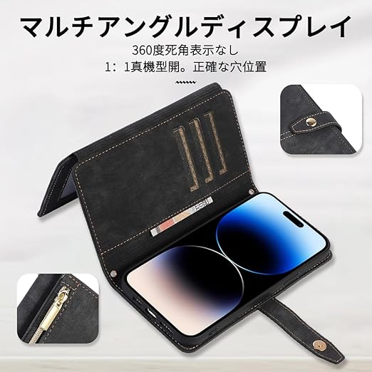 NKECXKJ iPhone 14 Pro 用 スマホケース アイフォン14Pro 肩掛け 首かけ 斜めがけ ショルダー PU革レザー iPhone14Pro 多機能 チャック付き 財布型 カバー いphone14pro 14pro アイフォン14プロ 手帳型 ケース カード収納 横置き スタンド機能 マグネットバックル付き 指紋防止 落下防止 薄耐衝撃 レディース メンズ(ブラック) a