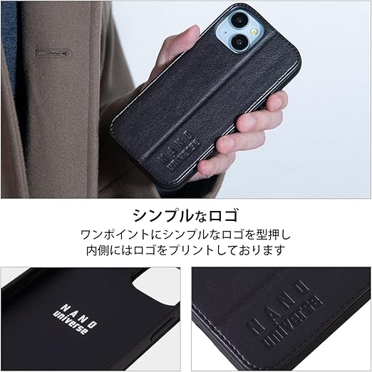 【 nano・universe 正規品 】 iPhone15 対応 ケース カード収納 スタンド付き iPhone14/13兼用 「 レザー調スタンドケース 」 ナノユニバース アイフォン15用 アイフォン14 13兼用 iPhone 15用 ブランド スマホケース (ブラック) a