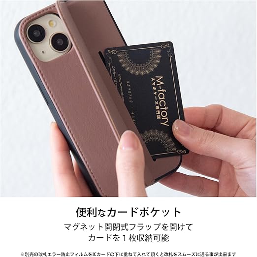 【マグネット開閉カード収納】開閉機能がついており、フラップを開けるとカードが収納できます。※ICカードを収納される場合は、干渉防止のための別途改札エラー防止フィルム(別売)をお買い求め下さい。