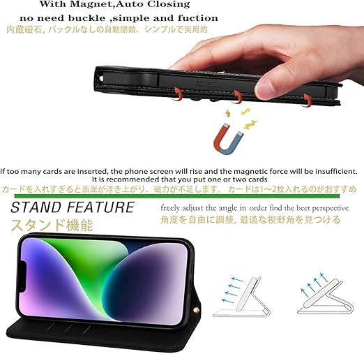 iPhone 14 Plus ケース 手帳型 超繊皮カバー 手帳型 耐衝撃 保護カバー 内蔵マグネット RFIDト 財布型 携帯カバー カードポケット スタンド機能 リストバンド NanHou - ブラック a