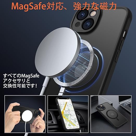 MagSafe対応 iPhone 15 ケース 半透明 マグネット搭載 アイフォン 15 ケース マット仕上げ 滑り止め 指紋防止 米軍MIL規格 耐衝撃 耐久性 全面保護 黄ばみなしアイフォンカバー iPhone15 マグセーフ対応CAKUPAJC (半透明, iphone 15) a